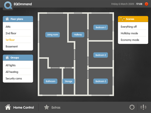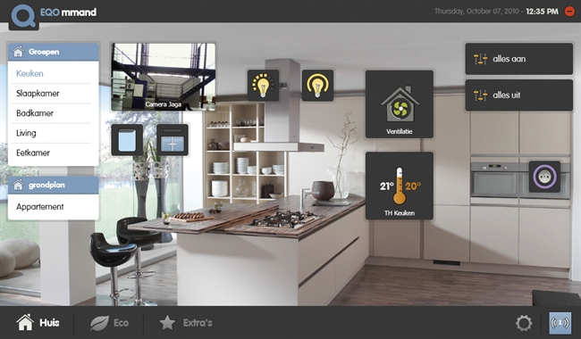 De EQOmmand software is zeer intuïtief en gebruiksvriendelijk. Met de software kunt u eenvoudig grondplannen maken en zo iedere kamer vanaf uw pc besturen. Daarnaast kunt u ook een ‘alles-uit’ knop instellen.